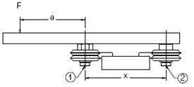 Step 1: Calculate loads on each bearing Given below are force equations for some common four-wheel carriage assembly configurations, in which two wheels absorb the load at both points 1 and 2, divide the calculated load by 2 to obtain the load on each wheel.